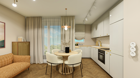 Warsaw TargówekApartment 43m2Project assumptions: bright, cozy, colorful, separate office area